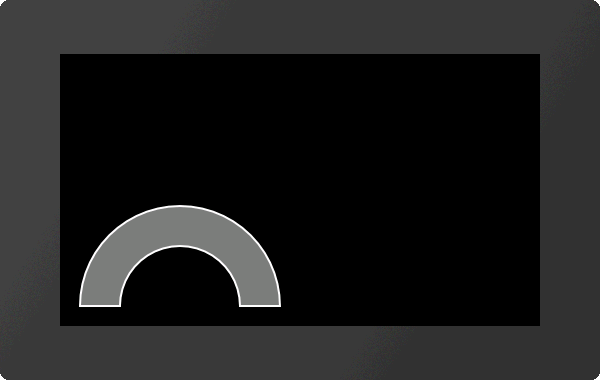 The command places a curved Bargraph with the Anchor and given Thickness at the position x, y. The size is determined by the parameters Radius, StartAngle and EndAngle. The filling color is taken from the DrawStyle-Filling. The DrawStyle-Background specifies the background and frame color. The structure of the DrawStyle sub-chapter is explained in more detail. The StartValue and EndValue determine the two limits of the Bargraph. The running direction is determined by Direction: