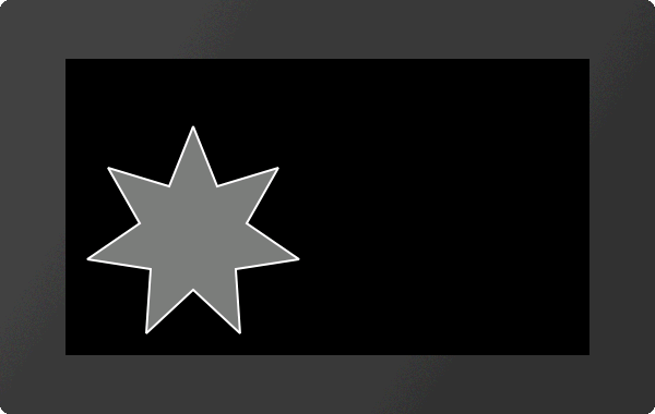 The command places a star with the Anchor at the position x, y. The appearance of the star is determined with the DrawStyle (DrawStyle-No.). This is explained in more detail in the DrawStyle subsection. The first tip is set to Radius1 above the center point. Then the connection to Radius2 is made then back to Radius1 etc. until the number of Tips is reached. It is also possible to determine a FrameThickness. Rotation around the anchor (Angle) can also be set. If anchor = 0, the construction point is used.