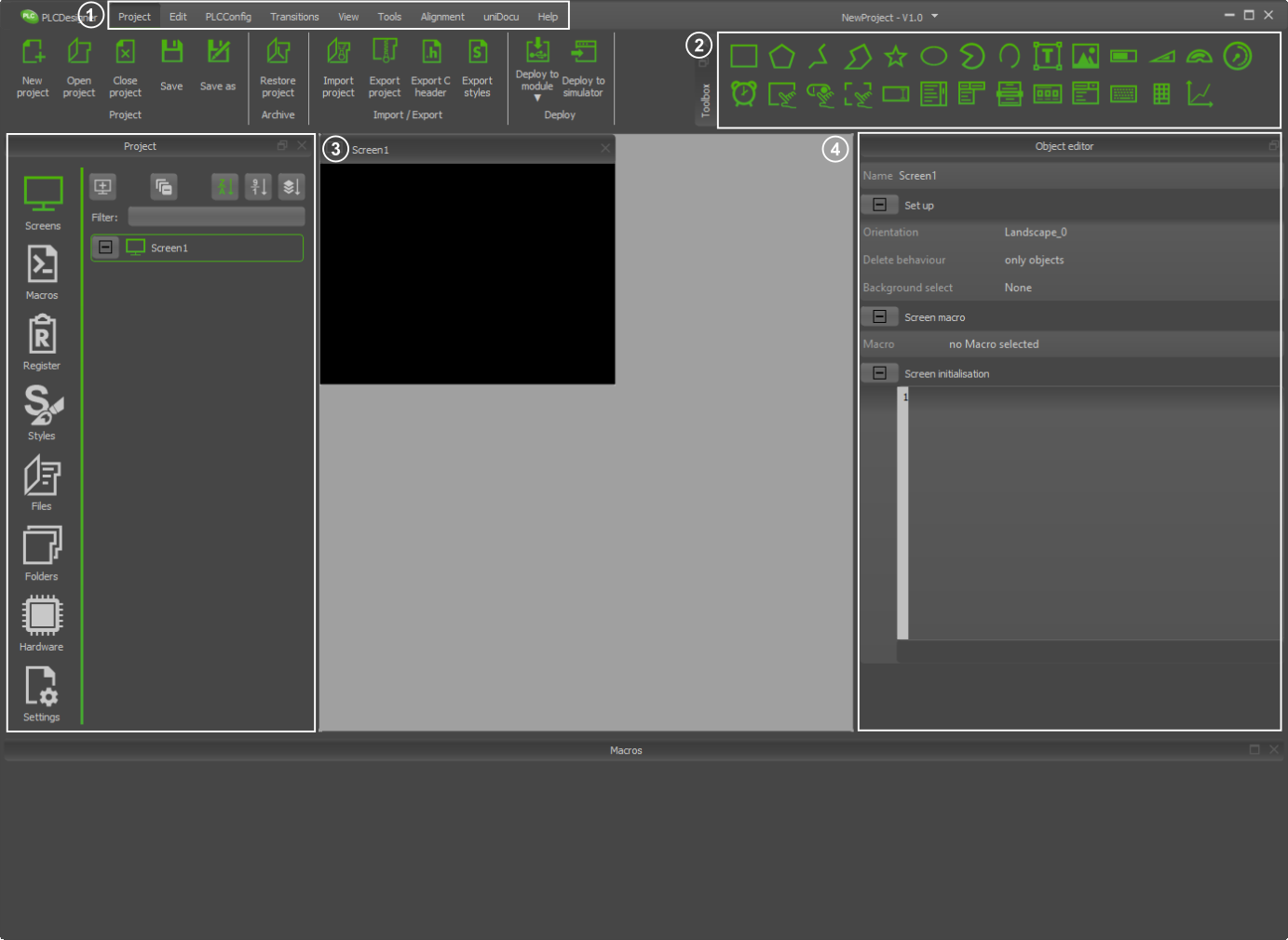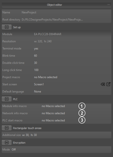 - PLC start macro: The macro is started when PLC has bootet completly.