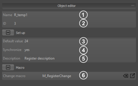 - Synchronize register: If synchronisation is selected, the register value is automatically shared with all connected modules in the network.