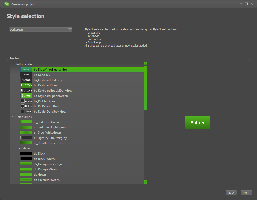 In a second step, you select a style template for the display. There is a default selection of styles. However, you can also create your own stylesheets, which can later be selected from the list. In addition, all styles can be changed and new ones created in each project.