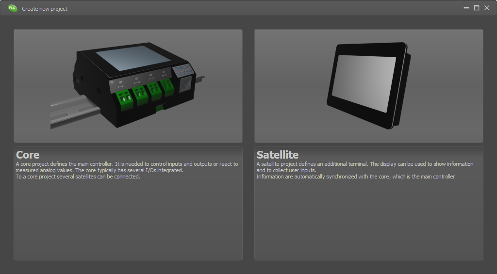 When creating a new project, you must first select whether you want to create a core or satellite project.