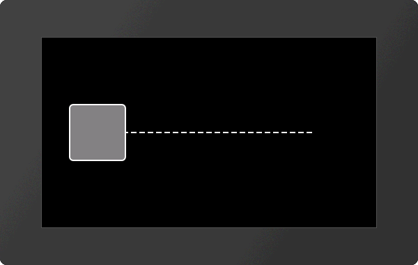 The object changes its size by means of the action path, the offset determined in percentage of the initial value. The x value of the path determines the magnification in the x direction, the y value correspondingly the magnification in the y direction. The course of time is specified by the action curve (1..10). |
