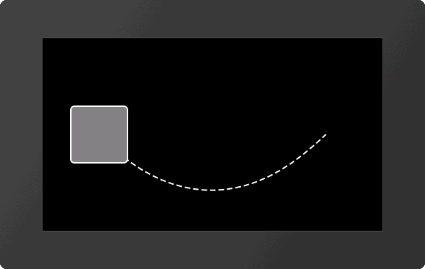The object changes its shear based on the action path, the offset determined in percentage of the initial value. The x value of the path determines the shear in x degrees, the y value accordingly the shear in y degrees. The course of time is specified by the action curve (1..10). |