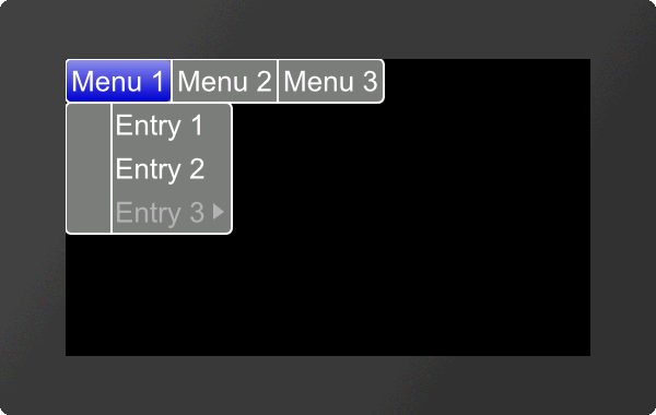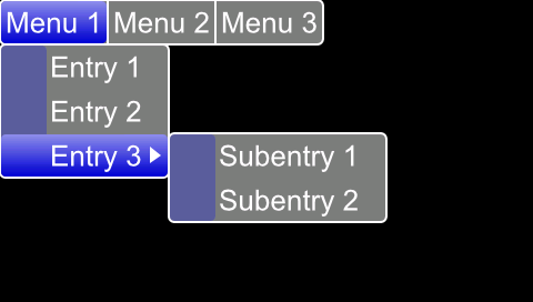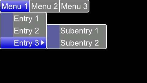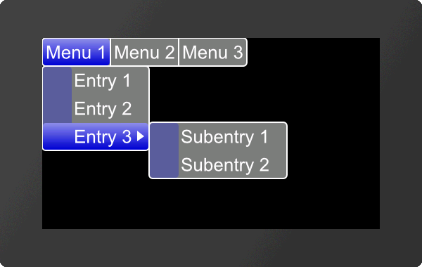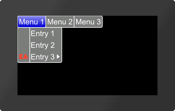 ... #EMS 1,0,4,1,5,17 #EMD 1,0,"Menu 1||Menu 2||Menu 3"; #EMD 1,1,"Entry 1|Entry 2|Entry 3"; #EMD 1,769,"Subentry 1|Subentry 2"; #EMP 1,0,271,1,5,5,5,10 ... |