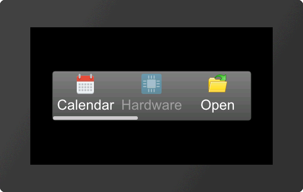 The PictureBox defined with the commands #EPSand #EPD is placed in with the given Anchor at x, y. The Radius parameter gives the corner rounding. ScrollbarWidth specifies in pixels the width of the scrollbar. The width +256 changes the position of the scrollbar to the left or top. If the value is negative, no line is present as a separator between the box and the scroll area. The VisibleEntries parameter defines the number of visible entries. The two parameters (DistanceX and DistanceY) can be used to specify the distance of the entry to the edge of the box and below the individual entries. The parameter Time can be used to define the scrolling speed to a programmatically selected new entry.