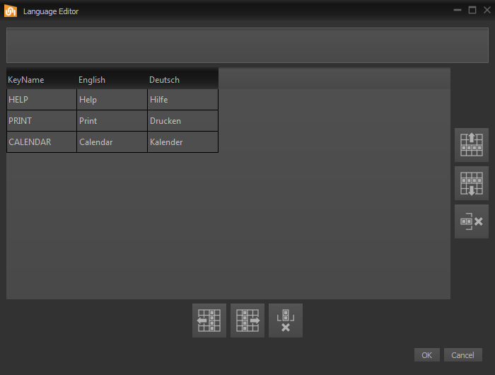The uniTFTDesigner supports multi-language of the EA uniTFT-Series. In the language editor (Tools -> Language Editor) multiple languages and KeyNames can be defined together with the corresponding translation. The file (Language.csv) containing the data can be found in the data folder of the project. You can use the file to hire a translation agency..