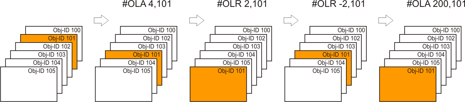 This command changes the drawing order of one or more objects. The object (Obj-ID) with the highest Draw order is drawn as a last resort.