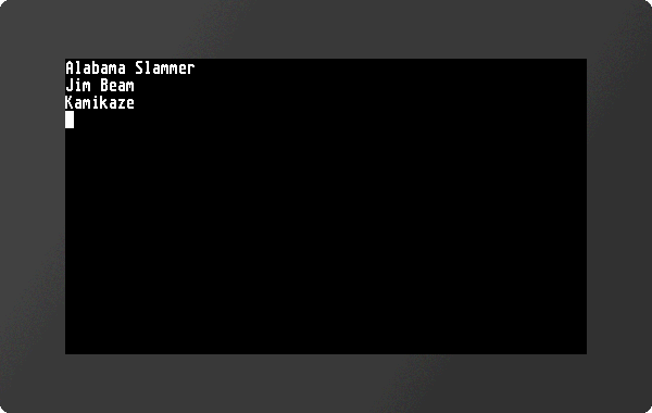 ... #VFL <P:string/German.txt> #SSP 1,1,10,10,7,!HELLO!; #VFD #VFL <P:string/English.txt> #SSP 2,1,10,50,7,!HELLO!; #VFD #VFL <P:string/Cyrillic.txt> #SSP 3,1,10,90,7,!HELLO!; #VFD #VFL <P:string/Chinese.txt> #SSP 4,1,10,130,7,!HELLO!; #VFD ... |