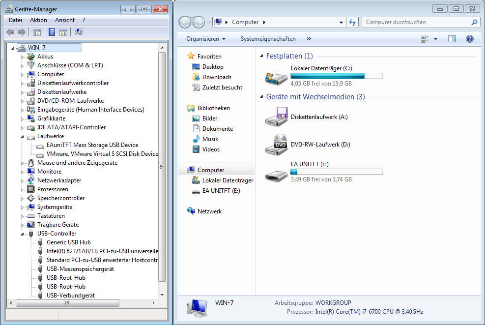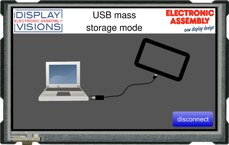 The EA uniTFT-Serie works as CDC-device by default to receive commands through the serial interface and USB-Port. When transferring data with your Windows PC, sometimes it is more convenient to turn on Mass Storage Mode so that the device is shown in Windows Explorer as a local drive and behaves similar to a USB-Stick.