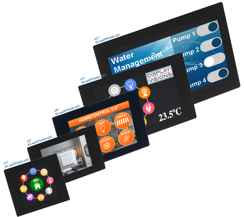 | 2.8" TFT 320 x 240 pixels, with PCAP and white LED backlight (external dimensions: 84 x 58 mm) | EA uniTFTs028-ATC |