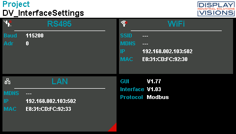 By default, a project can be found on the display that allows to set the interface parameters. This project can be selected at any time via the boot menu. It is important to select the Save setting. How you access the boot menu is described in the Boot menu chapter.