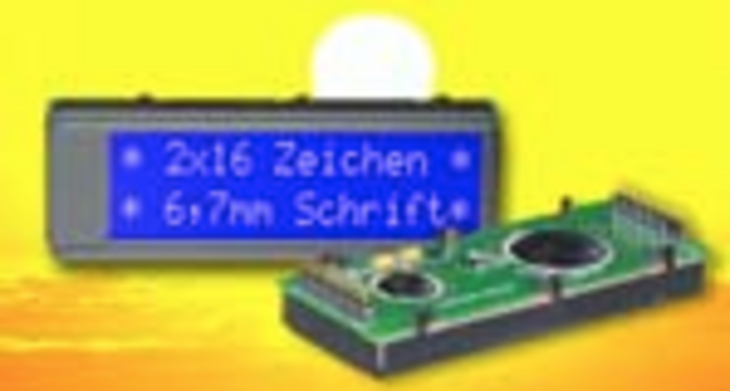 The BlueLine displays are the latest craze on display market. Right now the first modules for pcb mounting are available. Just put it into pcb and solder. There are no srews, pin header or cable necessary. Soldered means mounted. This is the the blue-white optic together with a smart production method. The new display EA DIP162-DNLW is compatible to the yellow/green DIP-line from ELECTRONIC ASSEMBLY. For a 2x16 display with 6.68mm font size outline dimension are very small: just 75x27x10.8mm ! Thanks to the novel supertwist technology viewing angle is extreme and color is real nice blue. As a standard display meets industrial standard with -20..+70°C. No contrast adjustment is required. Some more displays with that style are announced.