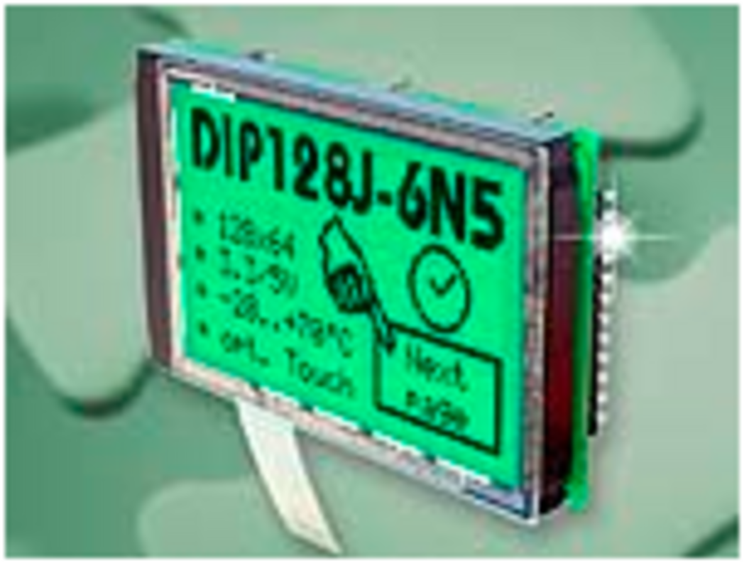 Stop now the boring old display technology. Once again ELECTRONIC ASSEMBLY is brilliant in innovative LCD displays. Subsequent to the amber coloured displays there are some new members of DIP family in green now. This will liven up the monochrome display world. You have the choice now for the same display in blue-white, black&white, amber and green-black, according to the application. The EA DIP128J-6N5LG provides with it's 128x64 dots enough space for messages and pictures. Outline dimensions are 75x45.8x10.8mm only. Thanks to the new FSTN technology the viewing angle is extreme wide and the contrast is brilliant. Readability under direct sunlight is also fine because of the transflective background. Already the standard type fullfills industrial requirements for the extended temperature range of -20 up to +70°C. Along of the integrated temperature compensation there's no need to adjust contrast over the whole temperature range. Power supply is 5V or 3.3V (single supply). Interface is 8 bit parallel for uC. In the mean time DIP family consist of more than 30 different members as text and graphic displays. Some more are announced already.