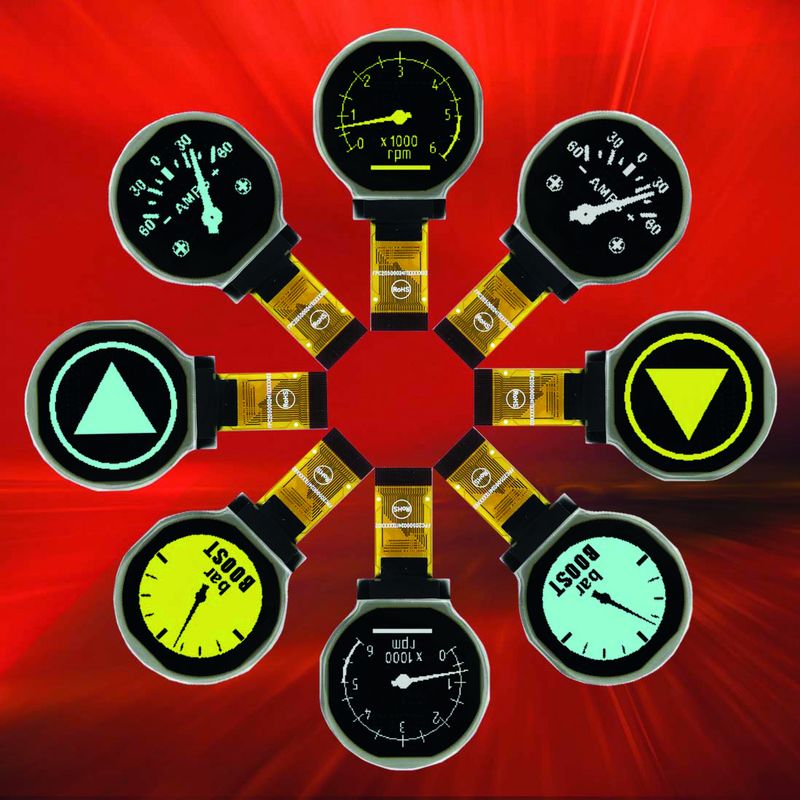 The new OLED displays from ELECTRONIC ASSEMBLY are just 2.05 mm thick. Its display area has a diameter of 30 mm (1.2") and consists of a passive matrix of 128 x 128 pixels. This format qualifies perfectly for the display of analogue measurement scales. The external dimensions of the entire module, including the connection cable, amount to almost 37x41mm.