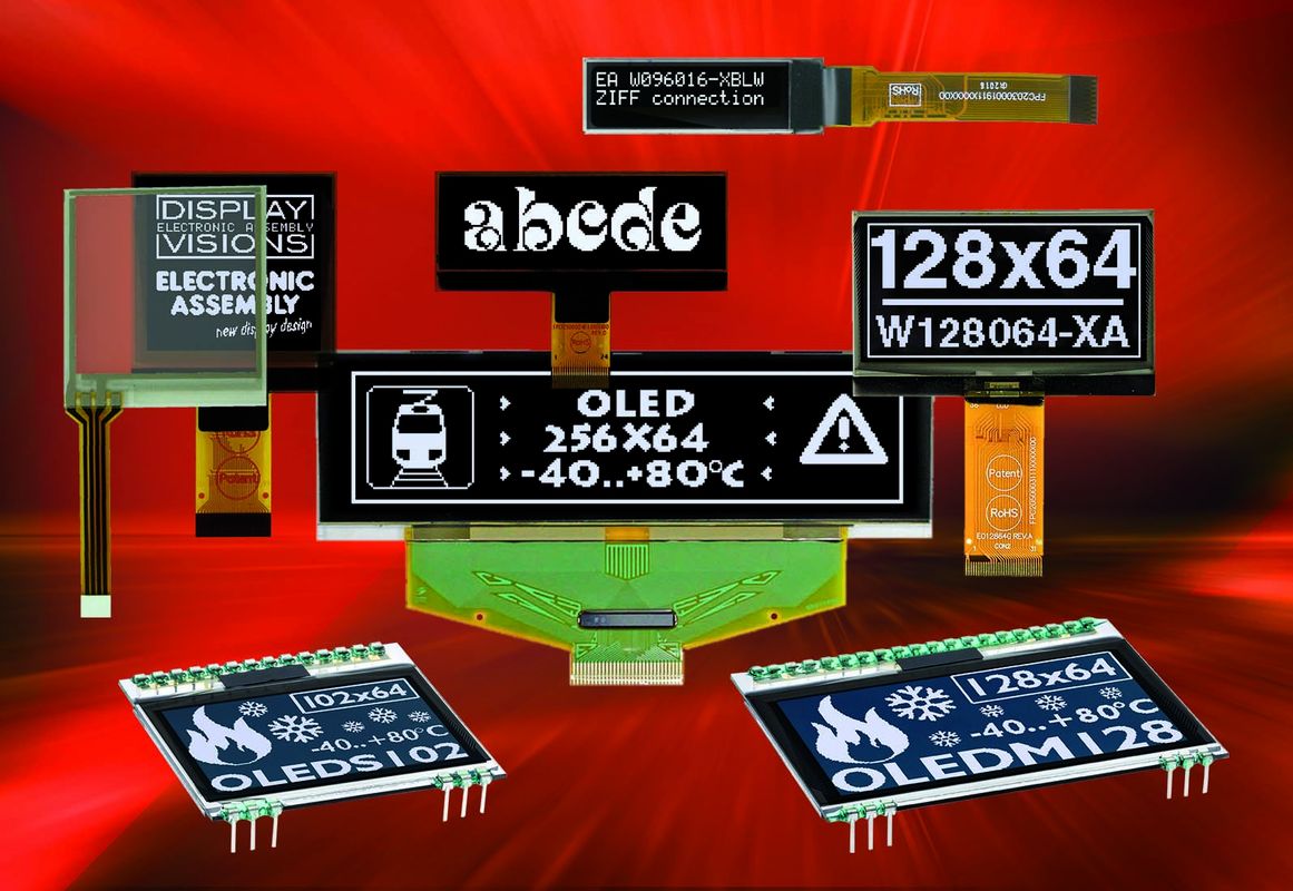 The new OLED displays from DISPLAY VISIONS have numerous impressive features. Firstly, there is the huge contrast range of 1:2000 typical of OLEDs, which ensures a crisp display with excellent readability. Then there is the extraordinarily wide viewing angle of over 170° - this means that the displays can be read from practically any perspective. There is also the huge temperature range in which these displays can be operated. It ranges from arctic winters at minus 40°C to tropical environments at +80°C. And last but not least, there is the extremely fast response time of 10 µs without afterglow. This fast response is achieved even at the lowest temperatures. The durability of these products is also remarkable: Thanks to a new, patented OLED technology, their service life reaches up to 100,000 operating hours, depending on the ambient temperature. This profile means that the displays can also be used in harsh industrial environments.